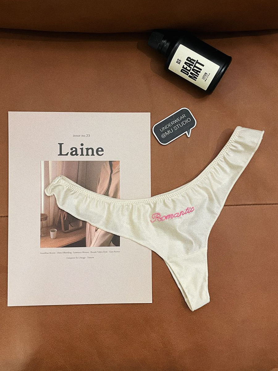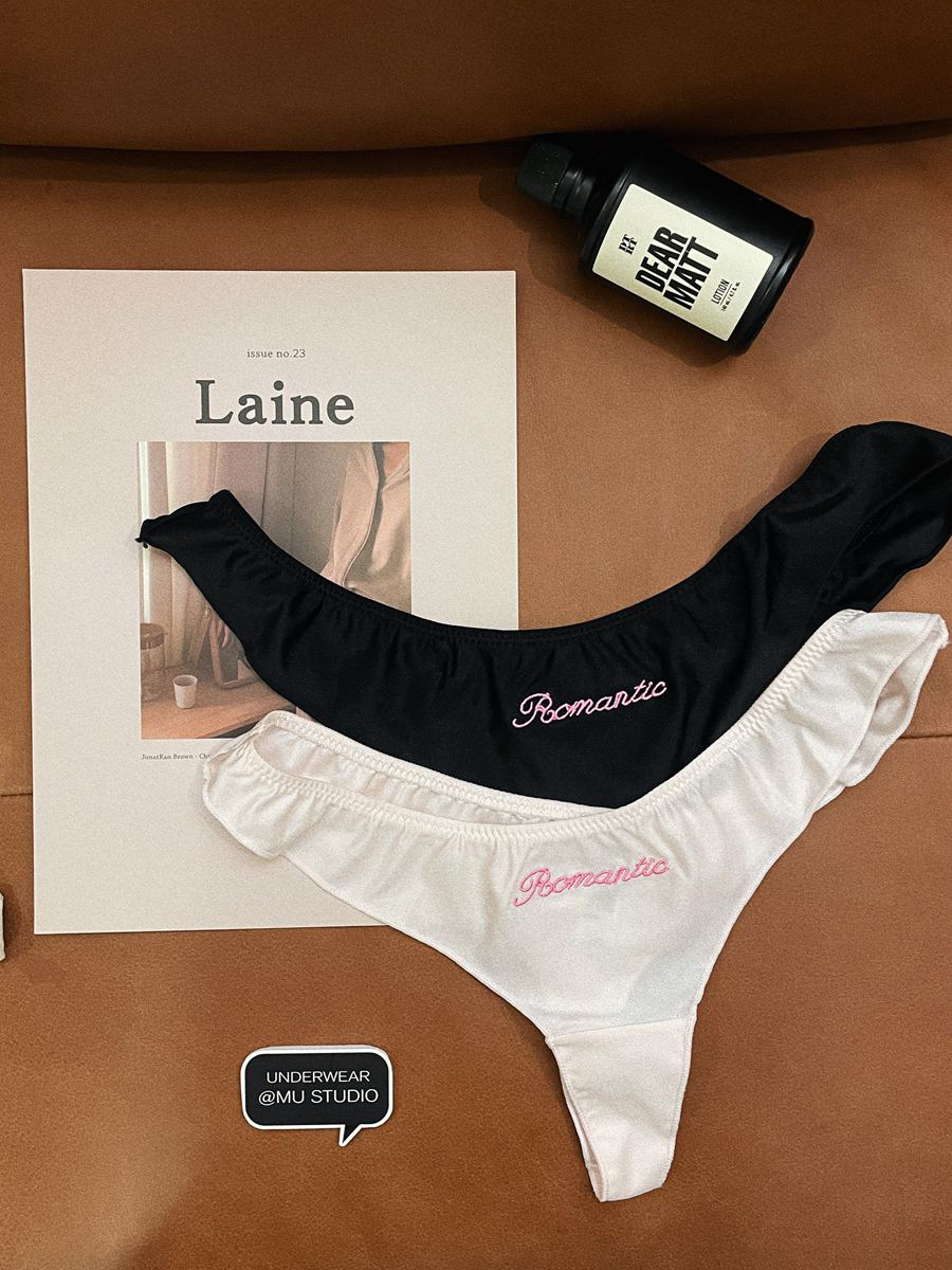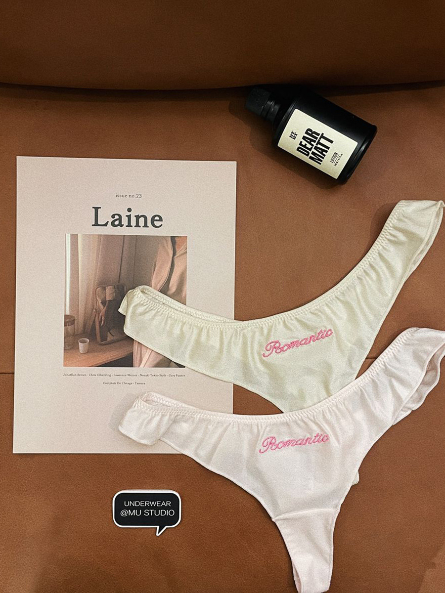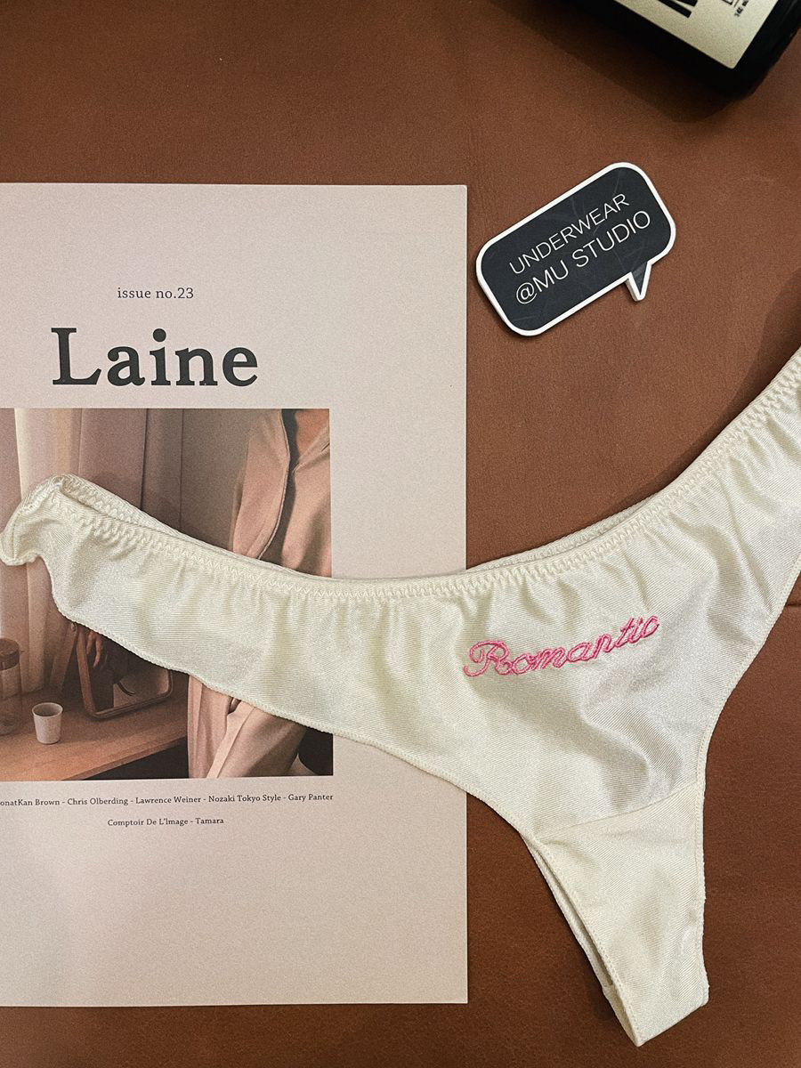 纯欲丁字裤性感字母冰丝缎面时尚刺绣法式情趣辣妹女士无痕T内裤