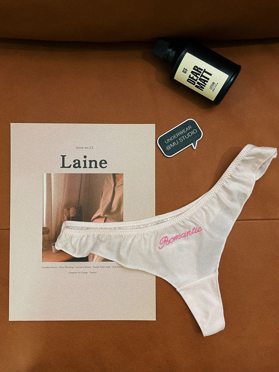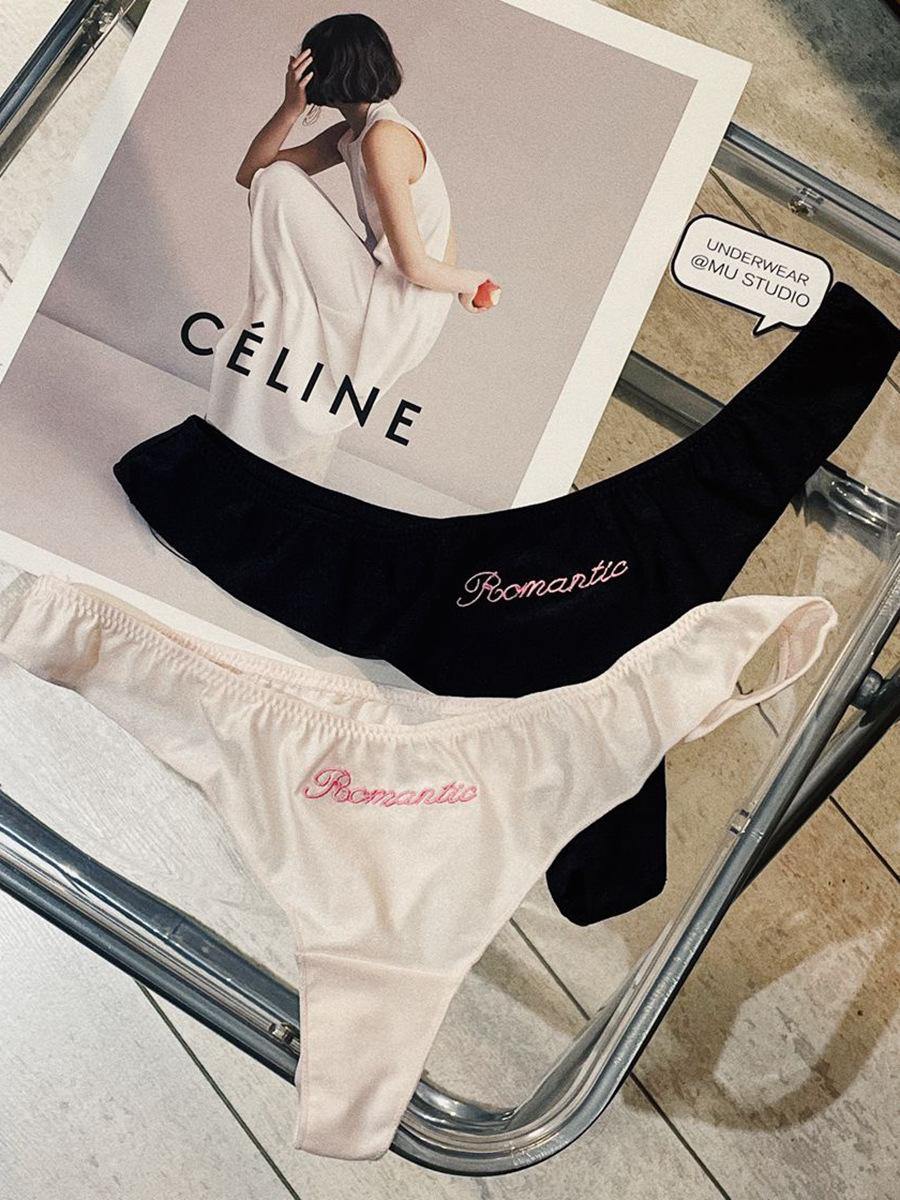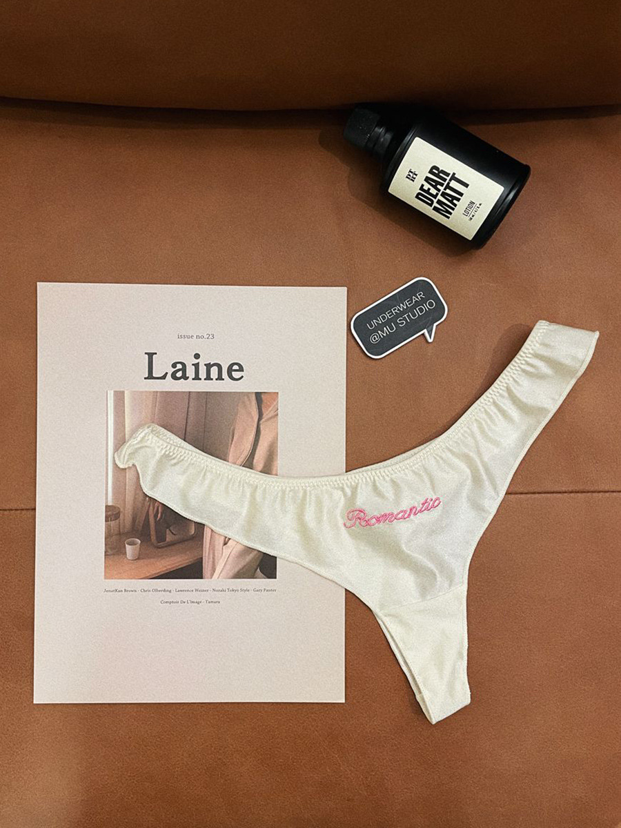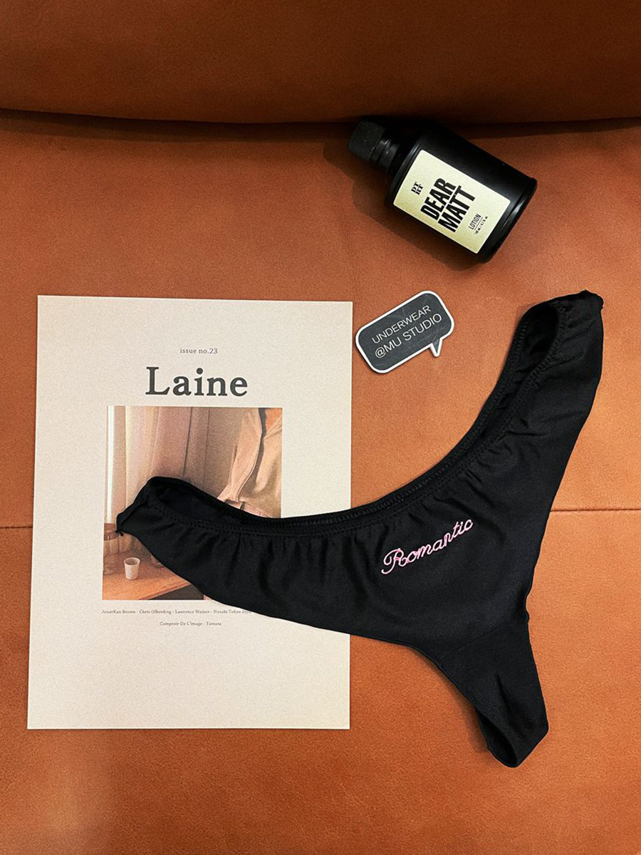 纯欲丁字裤性感字母冰丝缎面时尚刺绣法式情趣辣妹女士无痕T内裤