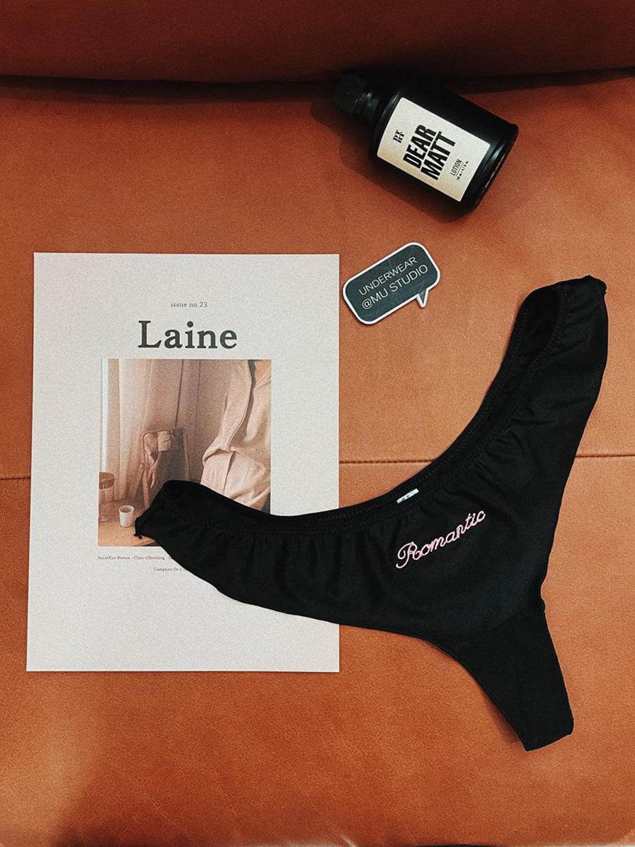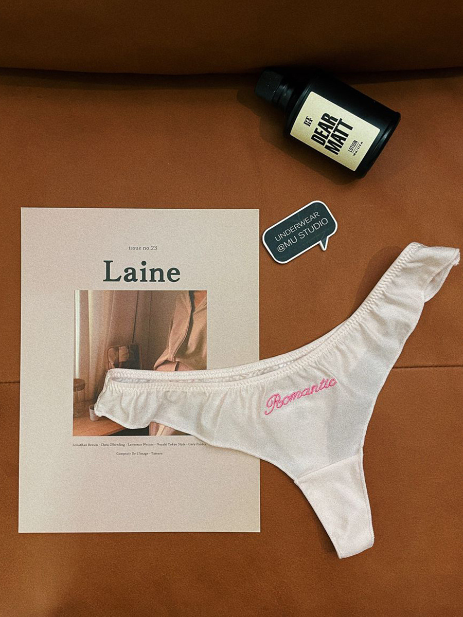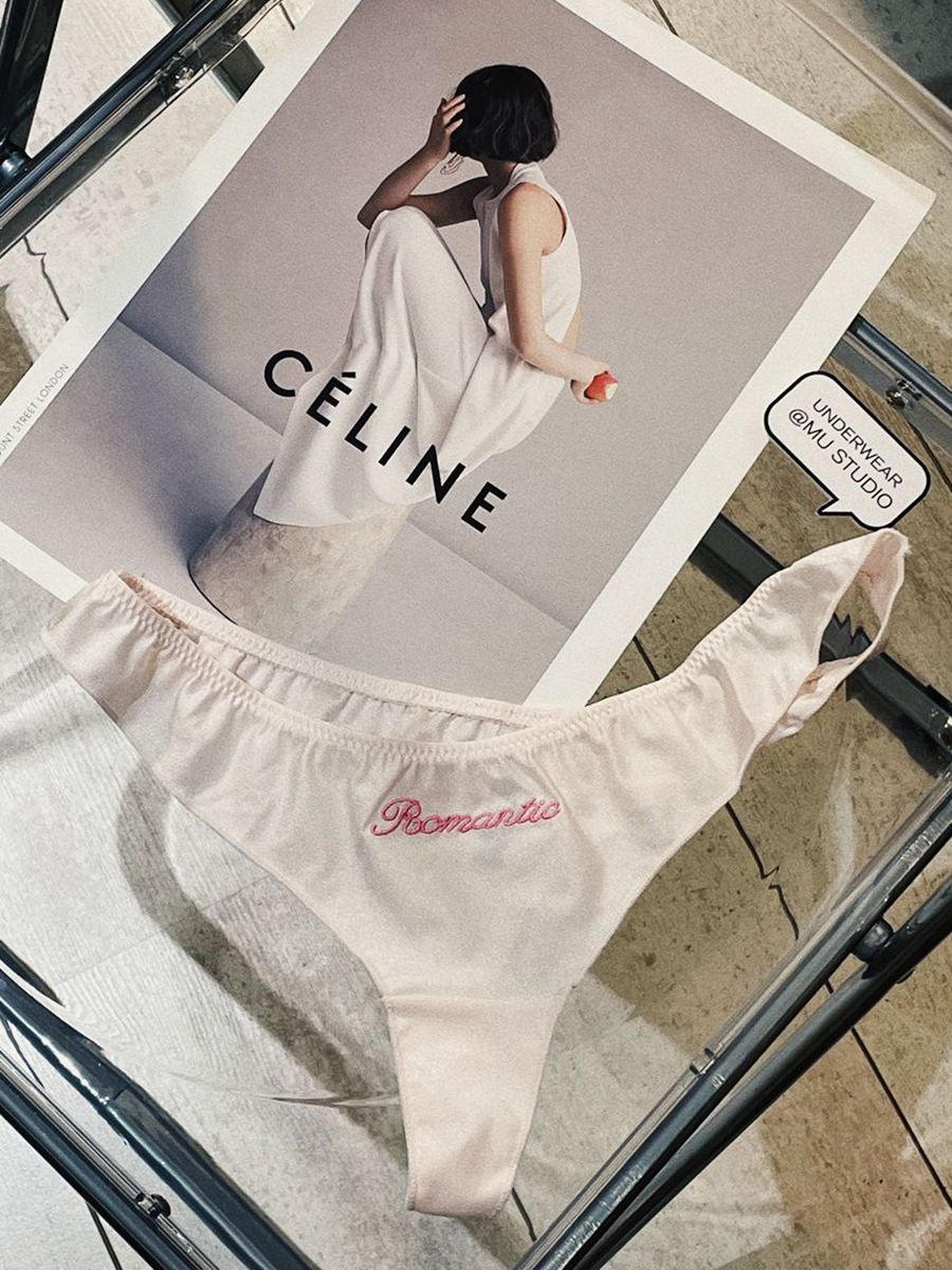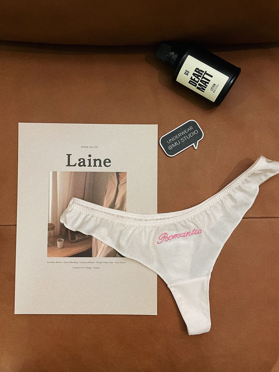 纯欲丁字裤性感字母冰丝缎面时尚刺绣法式情趣辣妹女士无痕T内裤