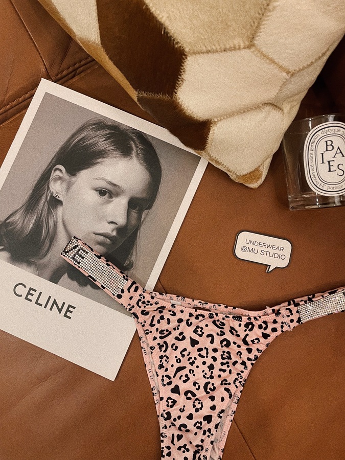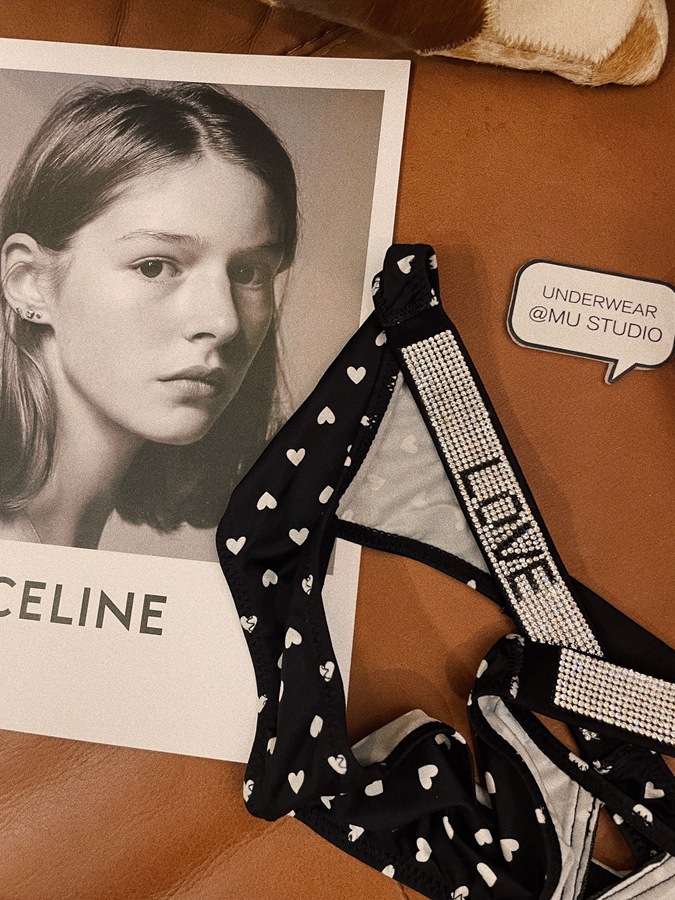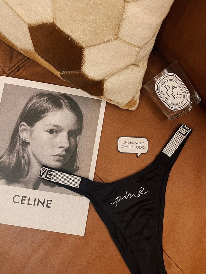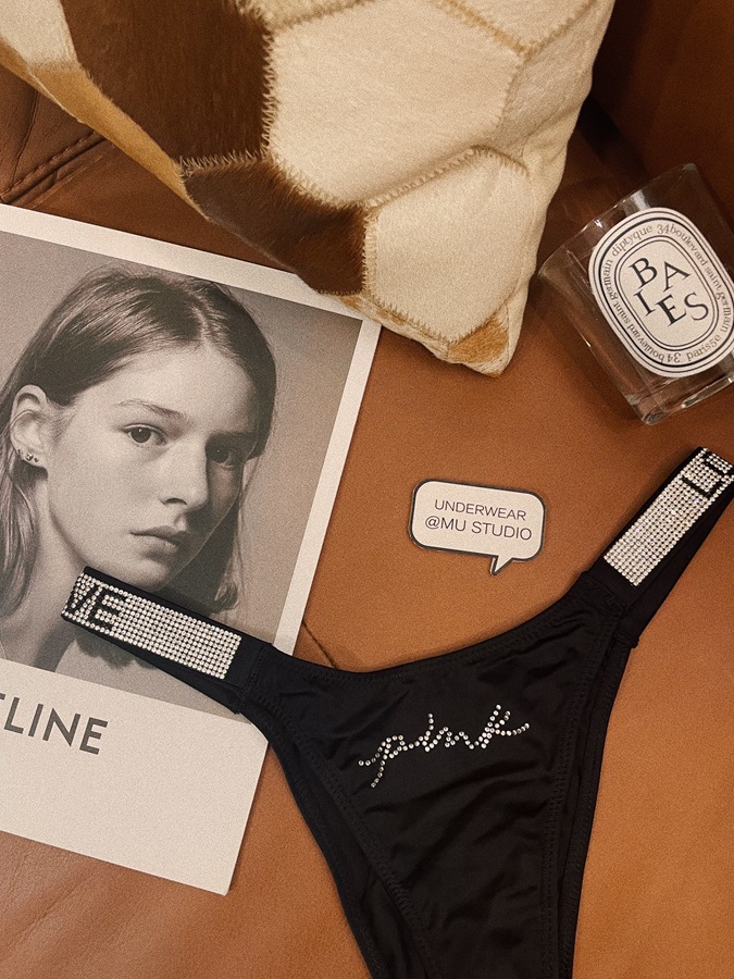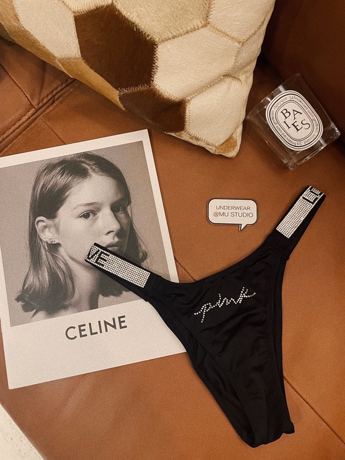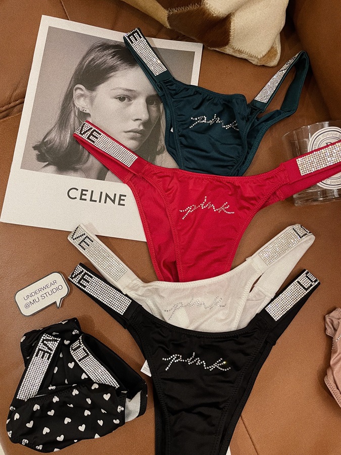 PINK性感欧美水钻冰丝缎面时尚个性情趣纯欲豹纹爱心字母女内裤