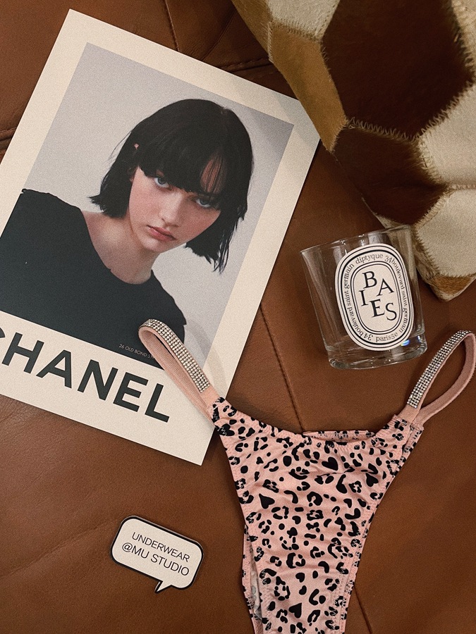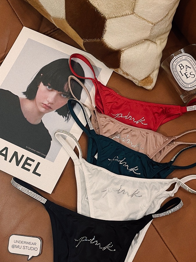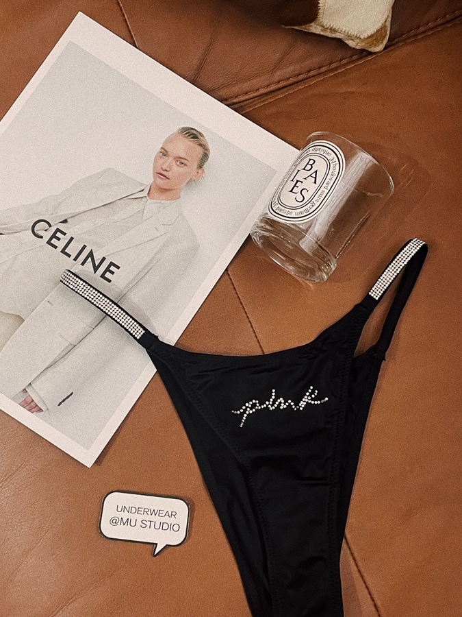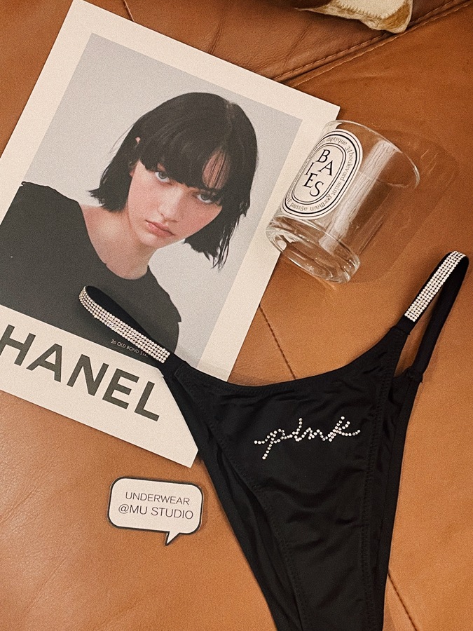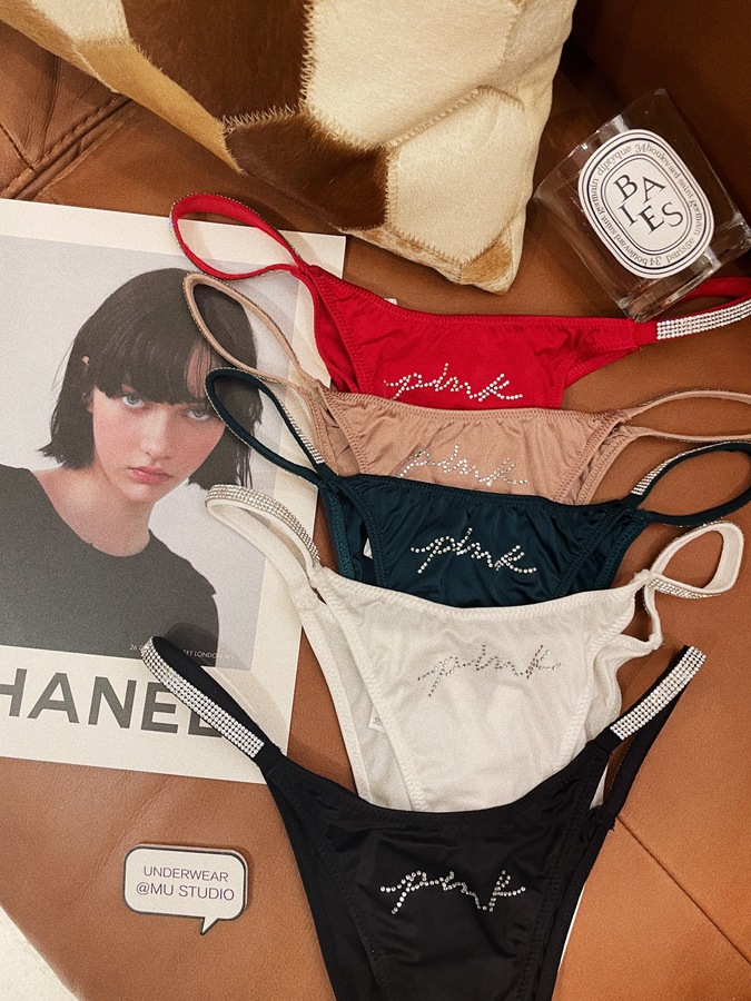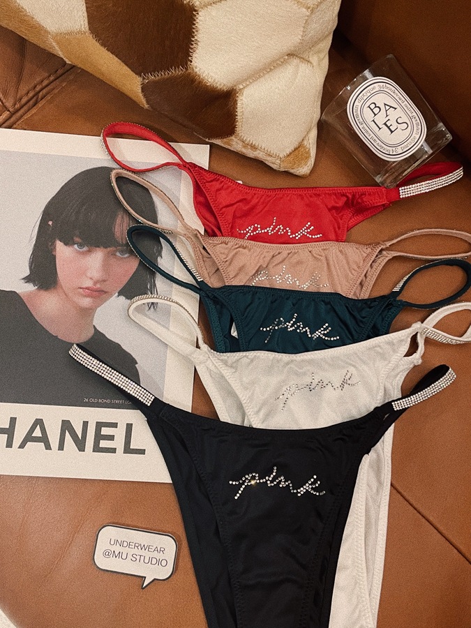 pink性感欧美水钻冰丝缎面时尚个性情趣豹纹爱心字母丁字裤女内裤
